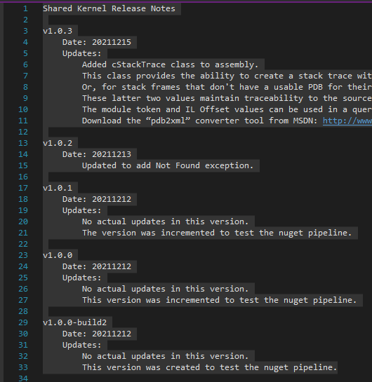 6. Build the project, and push the nuget package to a repository to confirm it contains release notes.