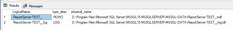 Get the current paths for the database and log files, with this: