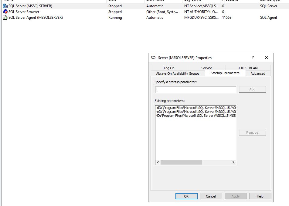 Instead, we will modify the startup parameters of the SQL engine service.