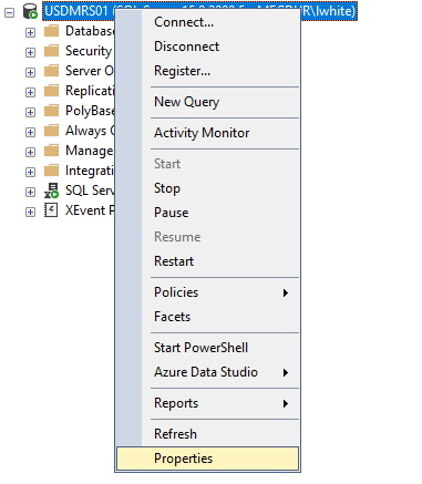 Once open, right-click the SQL engine and select properties.