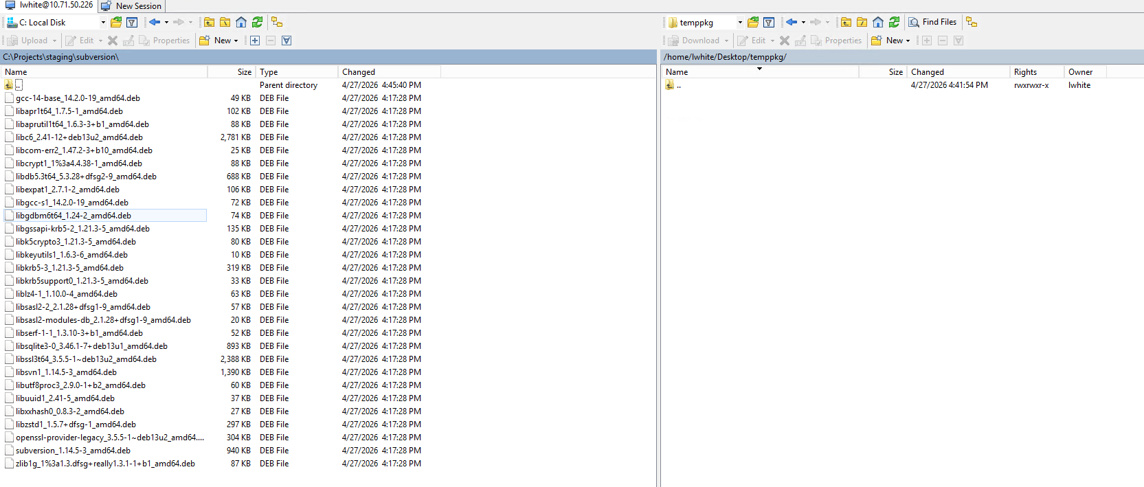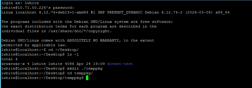 Once the packages are on the target VM, open an SSH session to it, and navigate to the download folder.